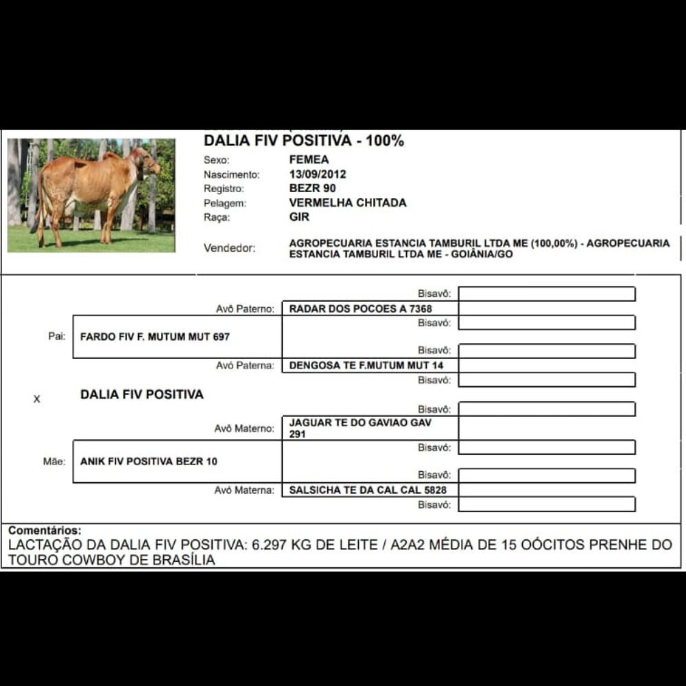 GENEALOGIA: COMBOY DE BRASILIA X DALIA FIV POSITIVA